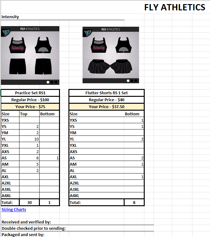 Amazing great fitting true to size products! The quality is absolutely great made with high quality fabrics! Not only are they fast shipping but the packaging is well thought of with no stress if something will come broken or torn. Fly cheer gear is a amazing brand with amazing products!