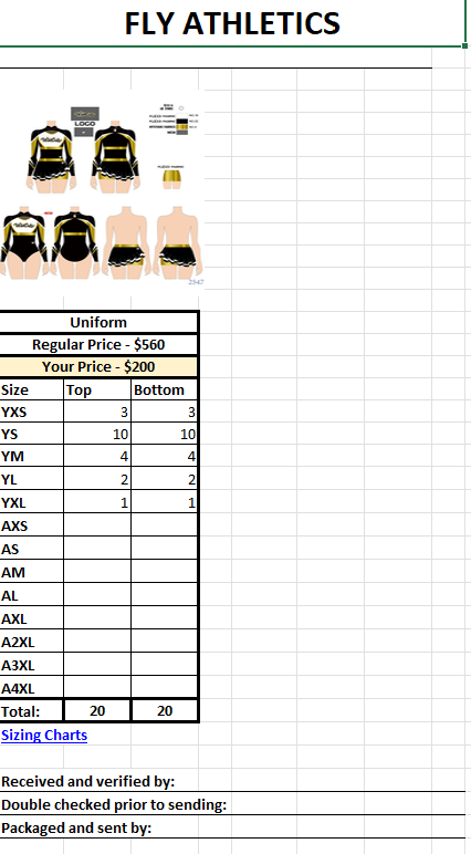 Amazing great fitting true to size products! The quality is absolutely great made with high quality fabrics! Not only are they fast shipping but the packaging is well thought of with no stress if something will come broken or torn. Fly cheer gear is a amazing brand with amazing products!